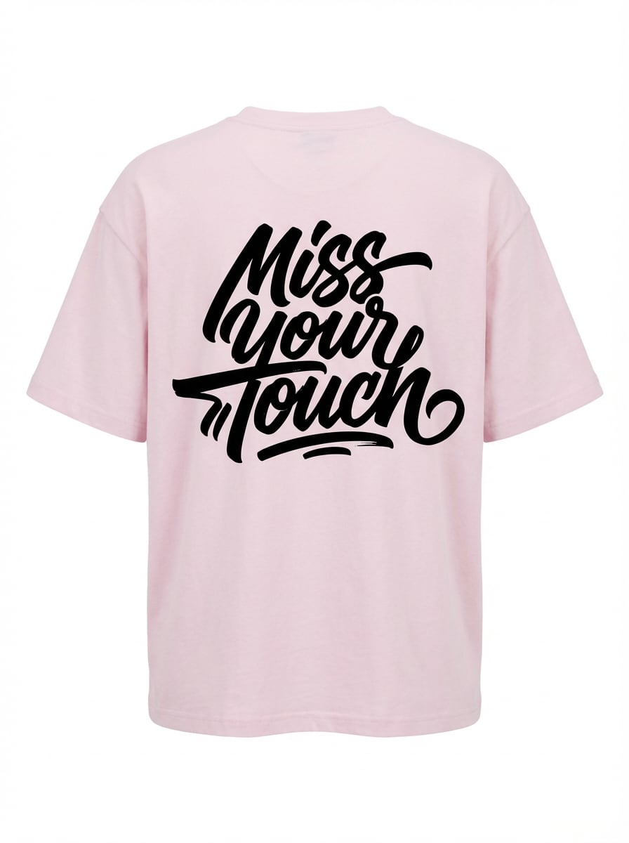 胸元のワンポイントロゴと、背中いっぱいに入った「Miss Your Touch」のグラフィックが印象的な半袖Tシャツです。前から見るとミニマル、後ろ姿はしっかり主役。シンプルな中にストリート感を効かせた、着るだけで雰囲気が出る1枚に仕上がっています。