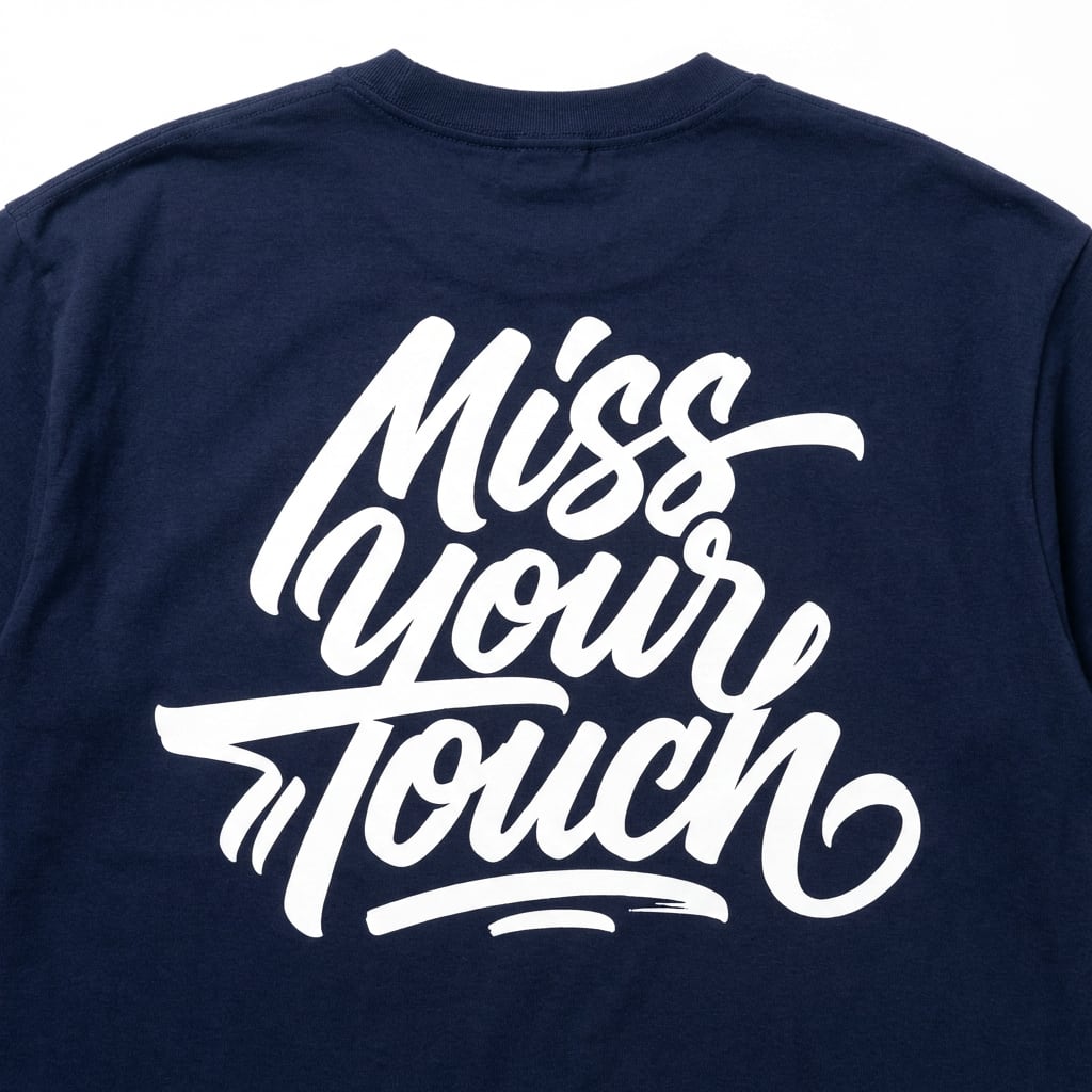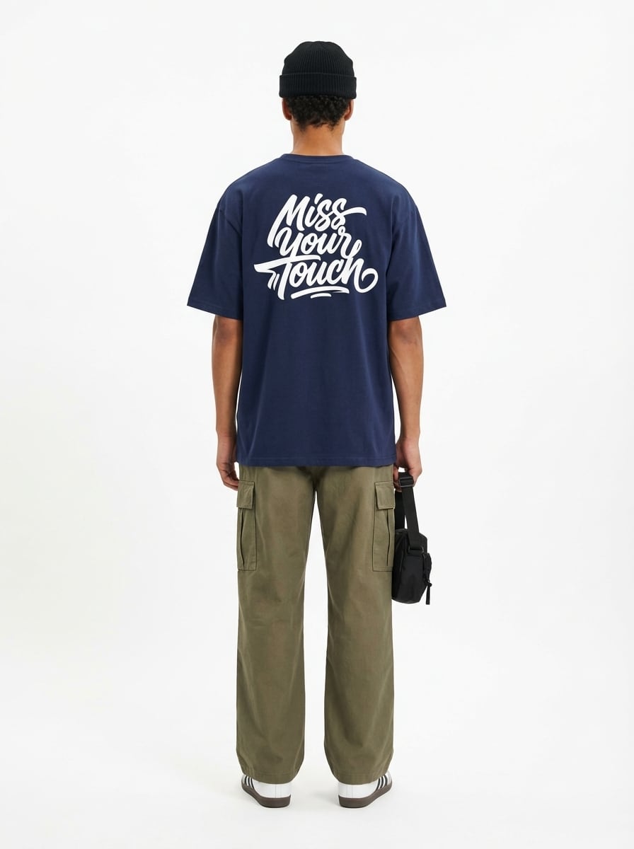 胸元のワンポイントロゴと、背中いっぱいに入った「Miss Your Touch」のグラフィックが印象的な半袖Tシャツです。前から見るとミニマル、後ろ姿はしっかり主役。シンプルな中にストリート感を効かせた、着るだけで雰囲気が出る1枚に仕上がっています。