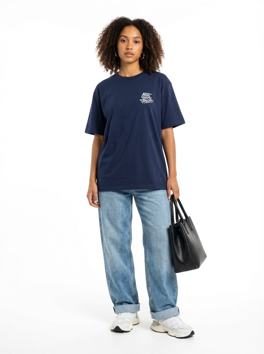 Miss Your Touch バックロゴ オーバーサイズTシャツ インディゴ