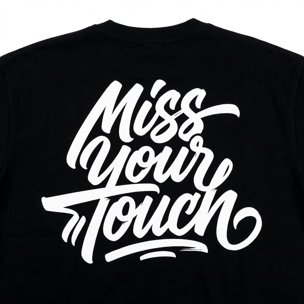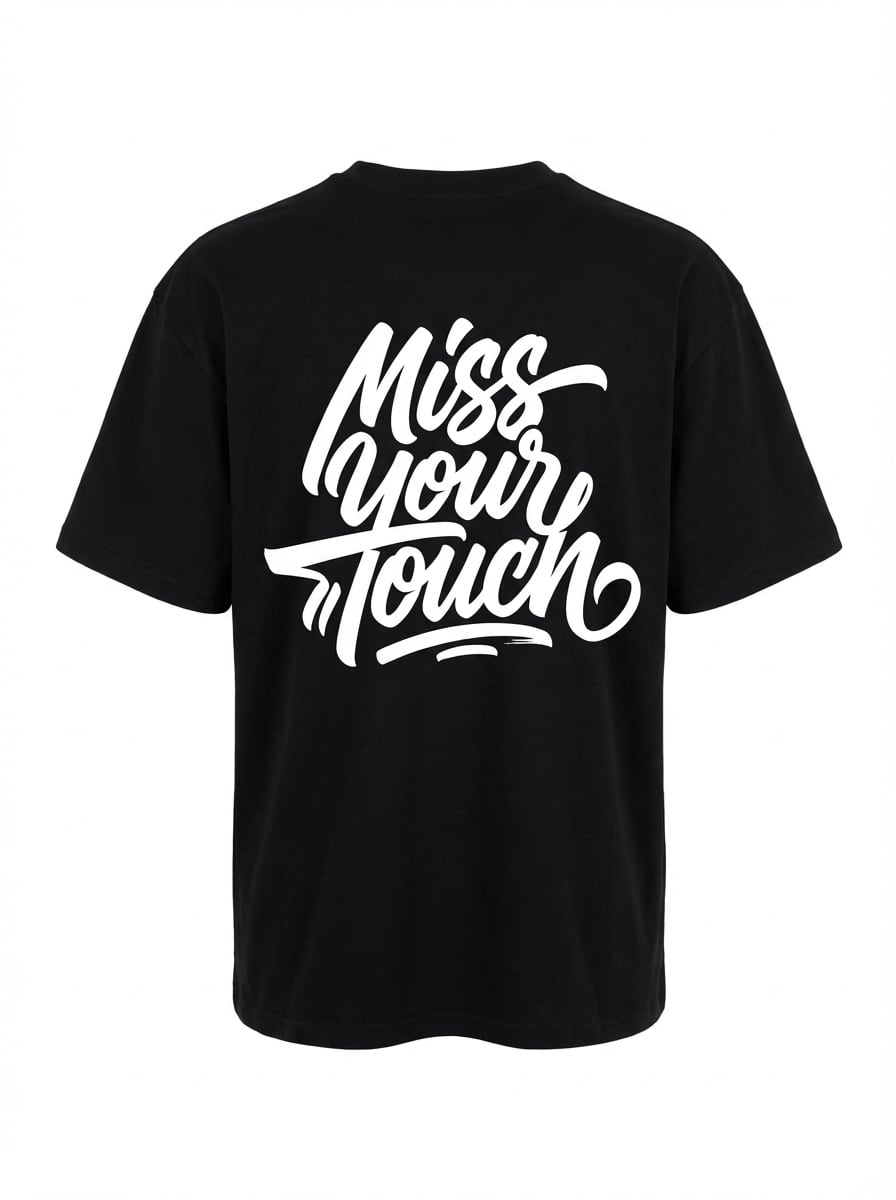 胸元のワンポイントロゴと、背中いっぱいに入った「Miss Your Touch」のグラフィックが印象的な半袖Tシャツです。前から見るとミニマル、後ろ姿はしっかり主役。シンプルな中にストリート感を効かせた、着るだけで雰囲気が出る1枚に仕上がっています。